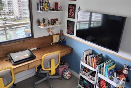Apartamento espaçoso de 83m² na Barra Olímpica, com piso de porcelanato 90x90 em todo apartamento, móveis planejados de qualidade na cozinha e quarto das crianças. Suíte principal espaçosa com espaço para cama king, quarto das crianças com móveis de madeira., bancada com gavetas para seus filhos estudarem e brincarem. Armário amplo para guardar objetos.