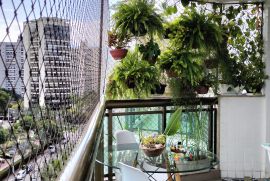O apartamento da de frente para rua Aroazes, andar alto e muito silencioso. Possui uma linda vista indevassavel para o maciço da Pedra branca. Ampla varanda de 10m2.