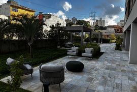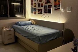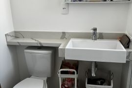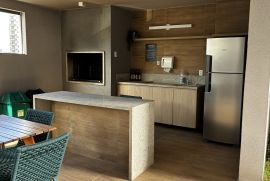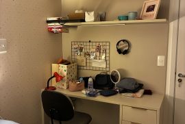 2 suítes + lavabo. Completíssimo! Geladeira, fogão, cooktop, lava-louças, repleto de armários, sala se jantar, sofá retrátil (sala de estar), rack suspenso, cama Queen… fica tudo (exceto os sofás da varanda).