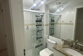 2 banheiros ambos com armários planejados , espelho e blindex