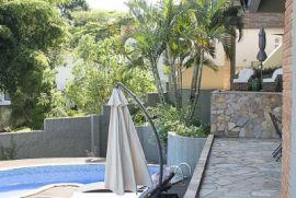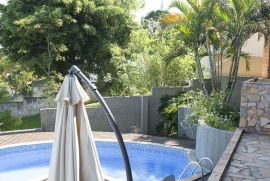 - Piscina que lembra o formato de um coração, com um belo deck, churrasqueira e um amplo quintal de gramado, perfeito para os pets e crianças.