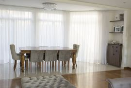- Sala de jantar conectada com a copa, cozinha e jardim de inverno e belo lustre;