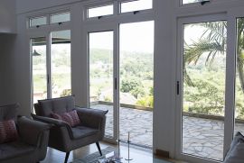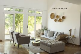 - Sala de estar com pé direito duplo, ampla e com vários ambientes (leitura, conversa), ótima iluminação natural e com uma vista única, requintada pelo pé de coqueiro;
