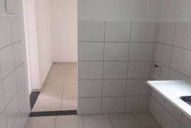 Apartamento no quarto andar, com dois quartos, 1 banheiro, sala ampla e cozinha conjugada com lavanderia.