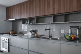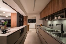 O projeto destaca-se pelos acabamentos de alto padrão, com marcenaria planejada Kitchens em todos os ambientes, unindo design atemporal, excelência construtiva e aproveitamento inteligente dos espaços. As bancadas, mármores e pedras naturais foram criteriosamente selecionados, garantindo qualidade superior e estética refinada.
