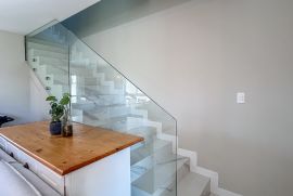 Fechamento em MDF embaixo da escada, ideal para guardar malas e itens menos usados