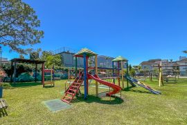 Em frente ao parquinho infantil e ao pet place