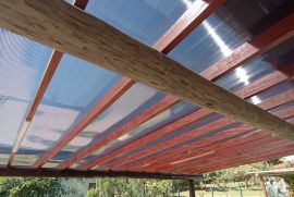 500m grama, irrigação automatizada por aspersores sendo 04 setores. Reservatório de água metálico c/ 5mill, Sistema de fossas ecológico 03 unidades. Iluminação externa ecológica e sem despesas com energia composta por 11 (onze) holofotes solares, e se necessário, temos 11 (onze) elétricos /200, sendo 04 verdes para realçar o paisagismo. Garagem (06 carros ) no eucalipto + vigotas peroba + policarbonato.