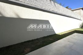 O projeto prioriza automação e praticidade: irrigação, cortinas, câmeras de segurança e outros sistemas integrados tornam esta casa uma verdadeira smart home de alto padrão.