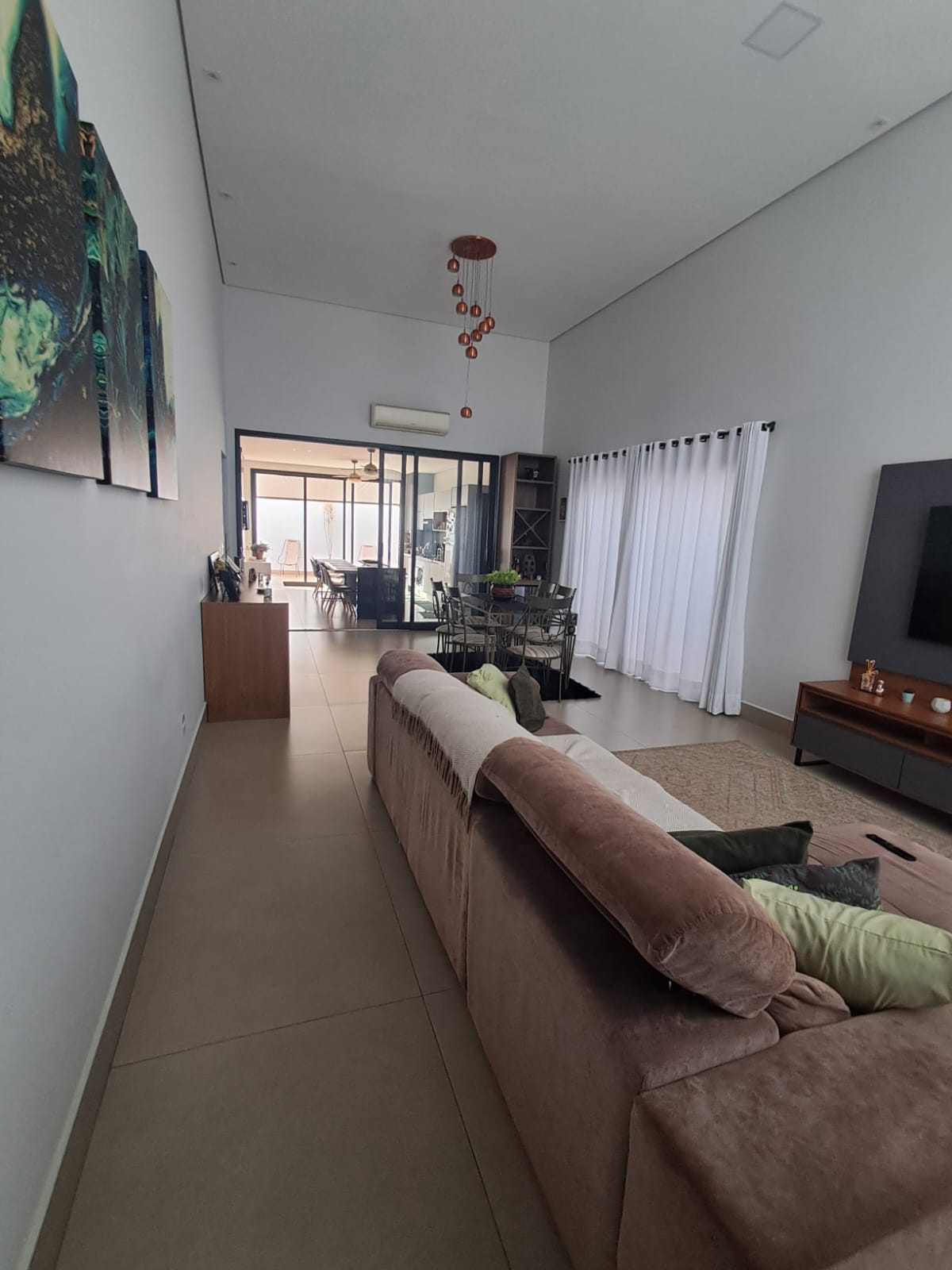 ✔ Sala com pé-direito duplo, proporcionando amplitude e iluminação natural abundante