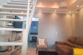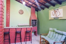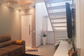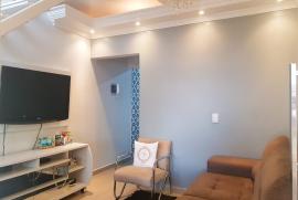 2 dormitórios sendo 1 com ar condicionado, sala, lavabo, wc social, cozinha com armários embutidos, área de serviço, área coberta fundos com churrasqueira, teto laje, acabamento em porcelanato, gesso e laminado nós quartos, garagem para 2 carros, Condomínio fechado, taxa de condomínio 88,00 área construída aproximadamente 100 mts terreno 5x 25