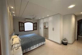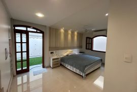- 4 quartos (3 quartos mais escritorio), um com suite, 6 banheiros, sendo um banheiro externo de serviços, dependência completa de empregada;