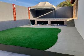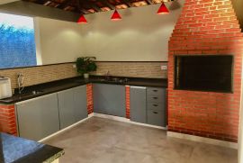 Salão de festas, churrasqueira, dependência de empregada, grama sintética e porão subterrâneo espaçoso .