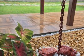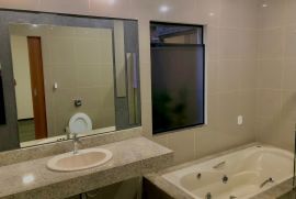 3 quartos com piso laminado e 1 quarto externo, 3 suítes sendo mais 1 banheiro externo, 1 suíte master com banheira de hidromassagem