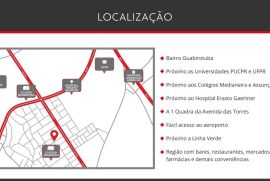 Especial espaço-studio para pessoas (profissionais da medicina, estudantes universitários, casais sem filhos) que queiram morar bem próximos da UFPR, Hospital Erasto Gaetner, Colégio Assunção, da Avenida das Torres. O studio é NOVO, ainda não está mobiliado! As fotos do anúncio são apenas sugestões de arquitetuta para mobiliar. Ainda sem utilização. Construção moderna. Portaria eletrônica, controle 24 horas e com entrada através de reconhecimento facial. Localizado no último andar, em posição muito privilegiada. Facil mobilidade para qualquer ponto da cidade. Local muito tranquilo, totalmente residencial, com as ruas laterais sem saídas e com fácil estacionamento no entorno do edifício. Região muito segura! Obs: sem garagem!