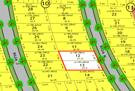 Excelente terreno localizado em parte alta (não alaga). Na terceira rua, apenas 300 metros da entrada do bairro. Próximo ao Campus CAVG-IFSul (à 900 metros da entrada). São dois lotes (12 e 13) na quadra 10, que no total perfazem 382m2. Lote 12 medindo 7,69m x 27,37m e lote 13 medindo 7,86 x 27,90.