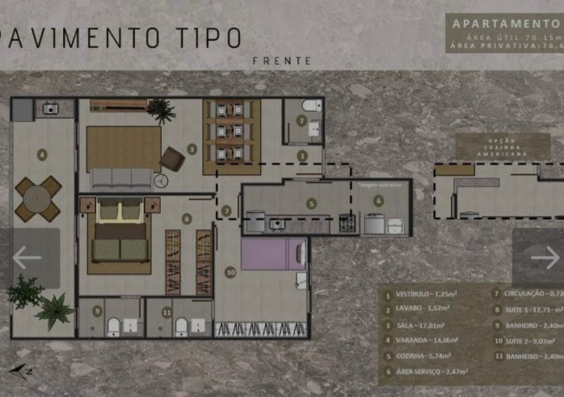 57m² • 2 Dormitórios • 0 Vaga