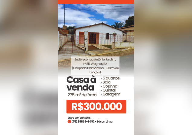 R. Antônio Jardim, 25, Wagner - BA, 46970-000, Brasil - Centro
