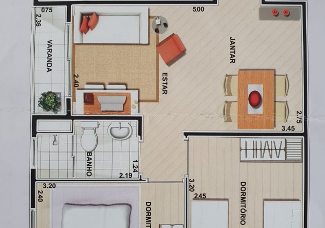97m² • Dormitório • 0 Vaga