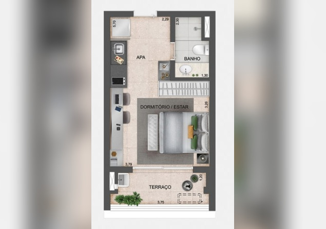 29m² • 1 Dormitório • 0 Vaga