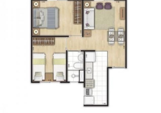 40m² • 2 Dormitórios • 0 Vaga